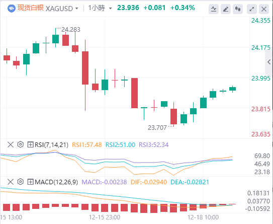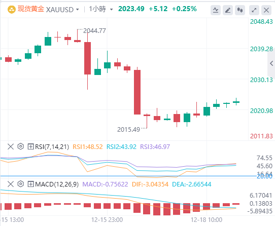 正如市场普遍预期的那样,美联储已经连续第三次维持利率水平不变,且19位美联储官员中有17位几乎一致预测,到2024年底,政策利率将低于现在的水平。美联储的“点阵图”显示,明年降息的预估中值为75个基点。八位官员认为明年降息幅度不到75基点,五位预计幅度会超过75基点。美联储的声明说,决策人员认为,通胀压力已在过去一年逐步缓解。当局会根据未来的经济形势,来决定是否需要采取任何额外的加息行动。受此影响,美元跌至四个月低点,黄金则受到追捧,逐渐走强。