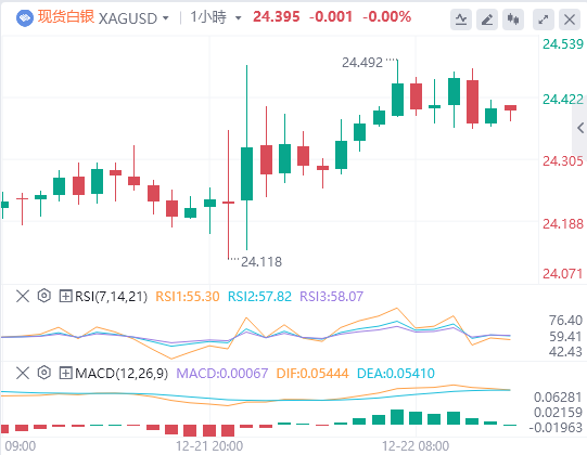 从白银一小时周期图来看,白银自低位22.49开始上行,呈现大幅拉升的强势多头形态,其后高位陷入盘整。在盘整区间中,行情低位呈现逐步抬高,高位也陆续在创新高,多头明显处在强势地位。当前行情逐步拉升,呈现高低位同步抬高形态,多头集聚能量延续上行,价格有望再次挑战高位,策略上建议尝试逢低布局多单为主。