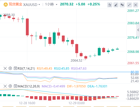 在2023年最后一次会议上,美联储承认通胀放缓,并确认2024年不会加息,同时暗示将实施75个基点的宽松政策。市场目前已消化3月份和5月份的降息预期。随着2024年即将到来,金价的进一步走势将取决于投资者是否对降息预期过高,或者经济萎缩是否会出现,以表明当前的定价是否合理。