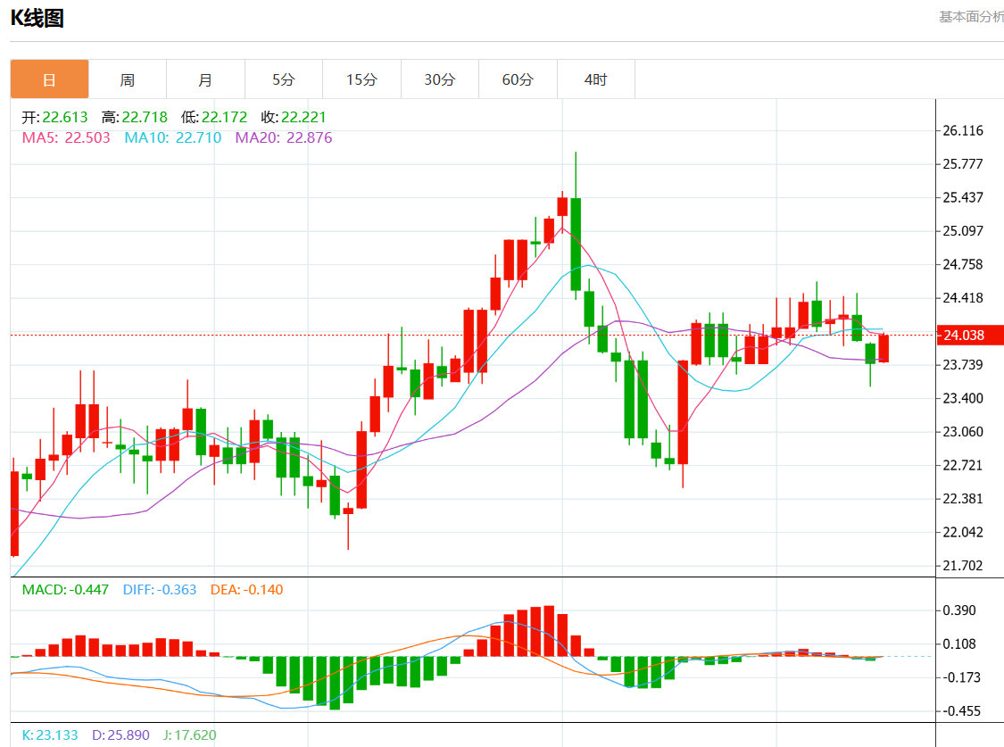 周二欧市盘中,现货白银报24.004,涨幅1.04%。