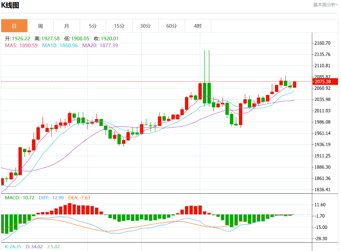 周二欧市盘中,现货黄金报2072.99,涨幅0.51%。