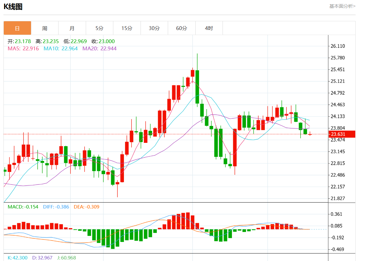 周三欧市盘中,现货白银报23.498,涨幅0.60%。