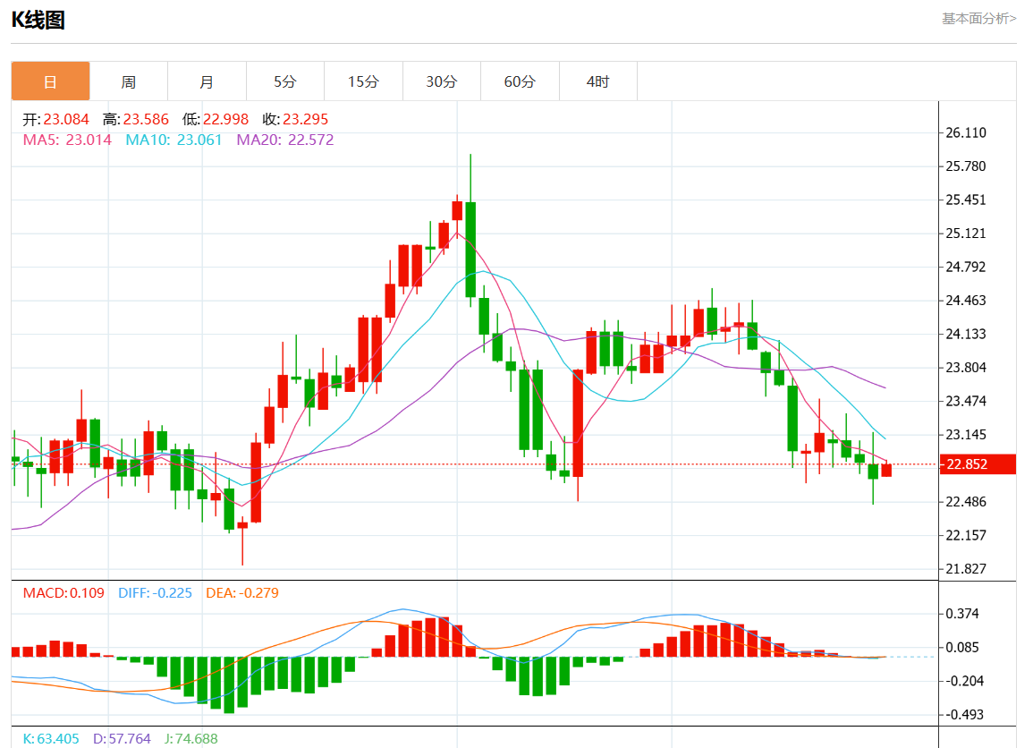 周五欧市盘中,现货白银报22.900,涨幅0.75%。