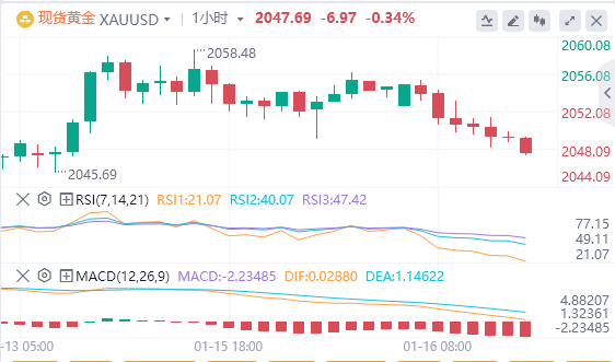黄金1H周期价格自2013.0附近时,市场买盘出现,价格震荡走高,市场重心上移,黄金进入偏多走势中。均线系统上,短期20均线上穿长期60均线,仍然维持向上拐头状态,多头排列之势不变,表明当前仍然处于多头走势中。当前亚盘时段,价格维持隔夜收盘价附近震荡,不改当前偏多走势。日内操作坚持逢低做多策略,建议于第一支撑位2038.5附近尝试布局多单,上行关注第一压力位2061.5一线,如若上破则指向2080.0一线压力位。