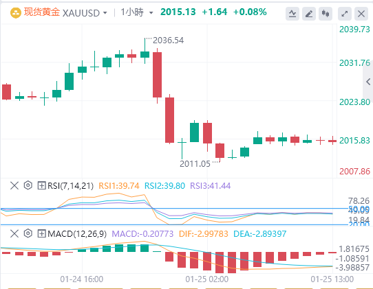 今天即将公布欧洲央行利率决议,并且欧洲央行行长拉加德会发布讲话,上涨因为欧行长讲话释放降息预期打压金价,如果今天还会释放降息消息,不排除还会更进一步利空影响。除此以外还有美国第四季度实际GDP年化季率初值,市场预期值为2.0%,远低于前值4.9%。