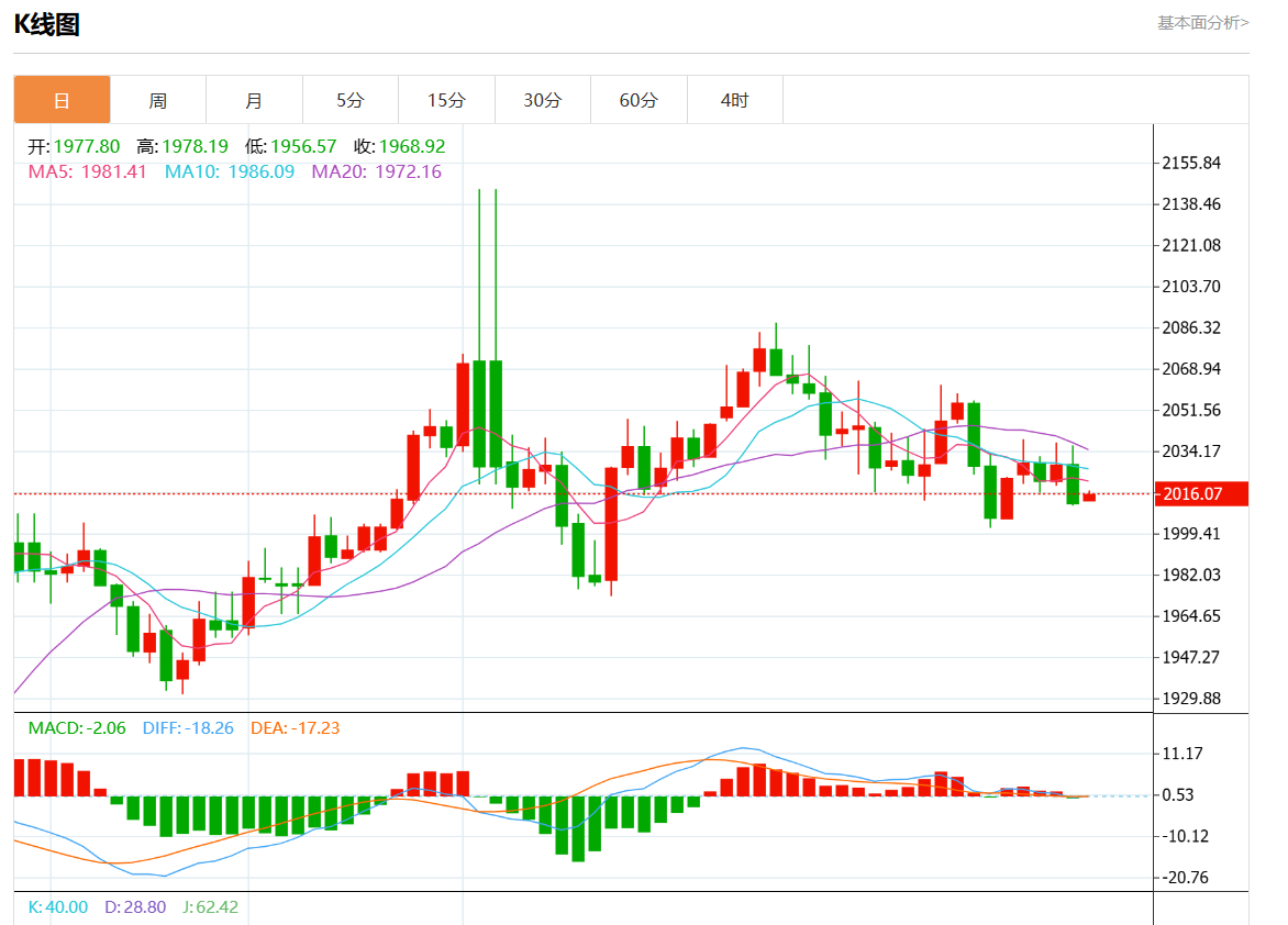 周四欧市盘中,现货黄金报2013.17,跌幅0.01%。