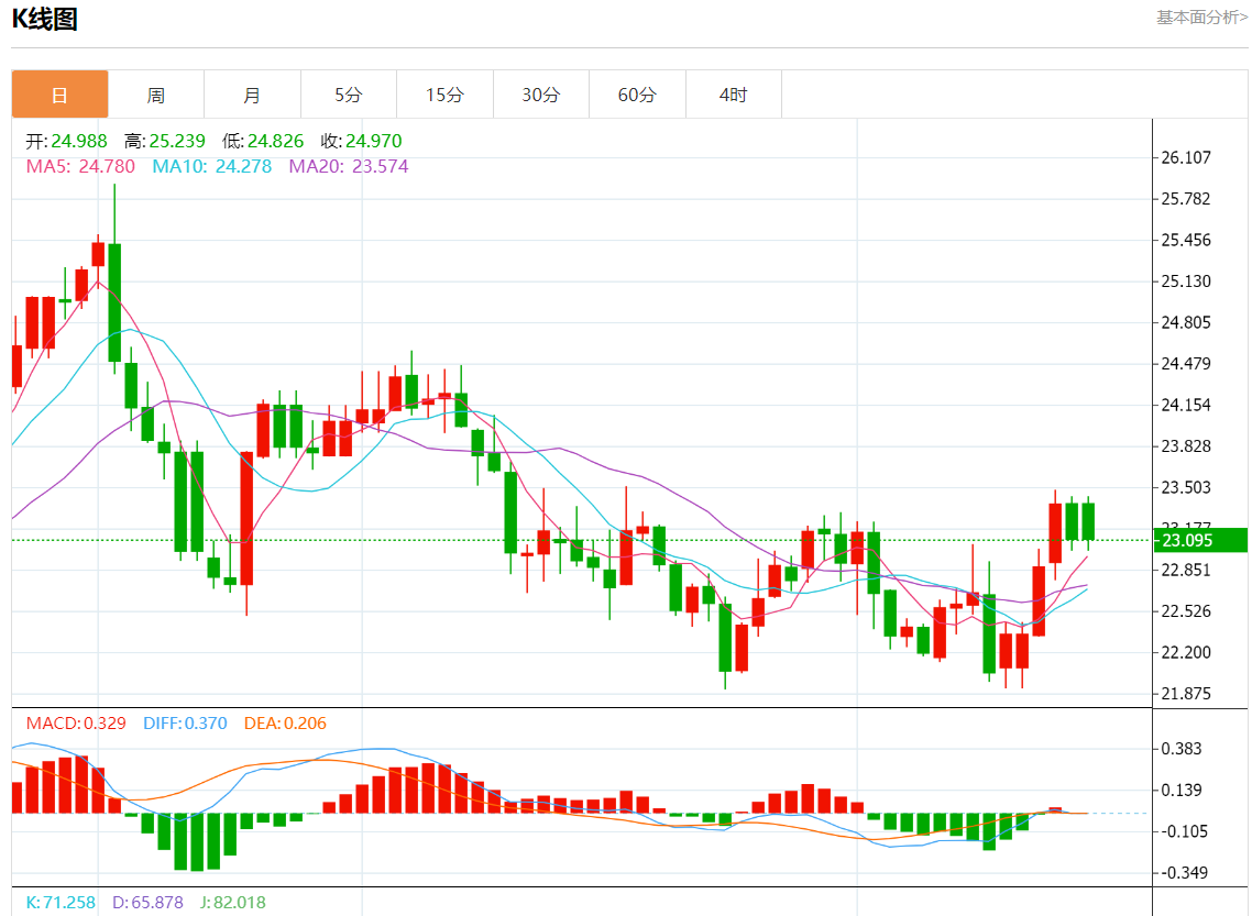 周一欧市盘中,现货白银报23.080,跌幅1.37%。