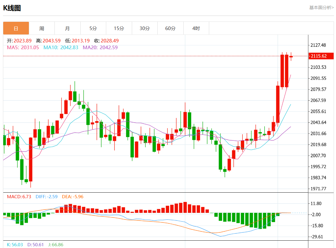 周二欧市盘中,现货黄金报2121.48,涨幅0.34%。