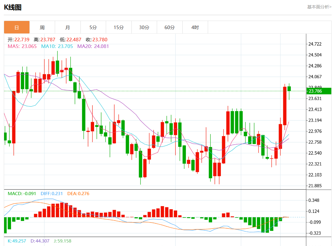 周二欧市盘中,现货白银报23.900,涨幅0.13%。