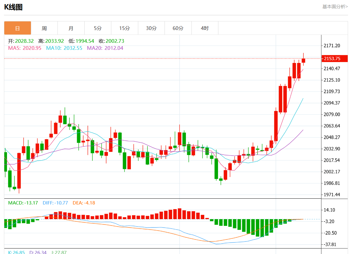 周四欧市盘中,现货黄金报2159.48,涨幅0.49%。