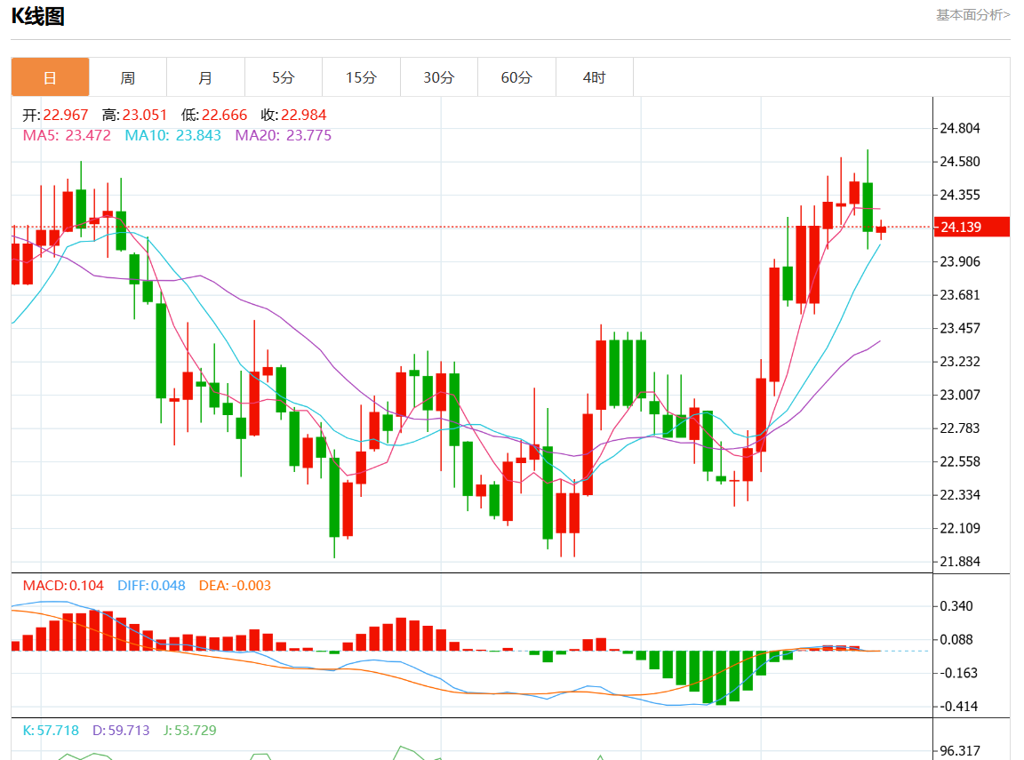 周三欧市盘中,现货白银报24.179,涨幅0.27%。