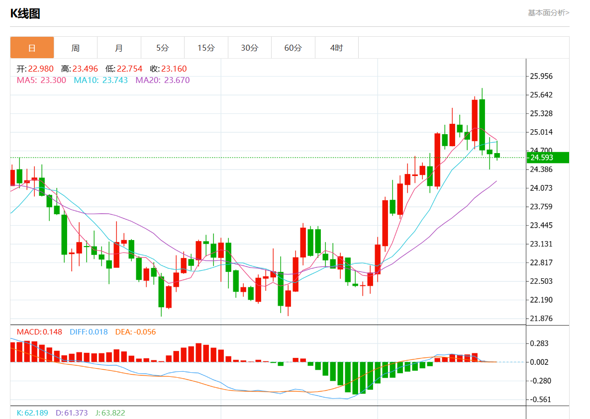 周一欧市盘中,现货白银报24.670,涨幅0.04%。