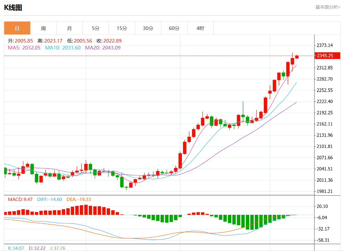 周二欧市盘中,现货黄金报2351.78,涨幅0.81%。