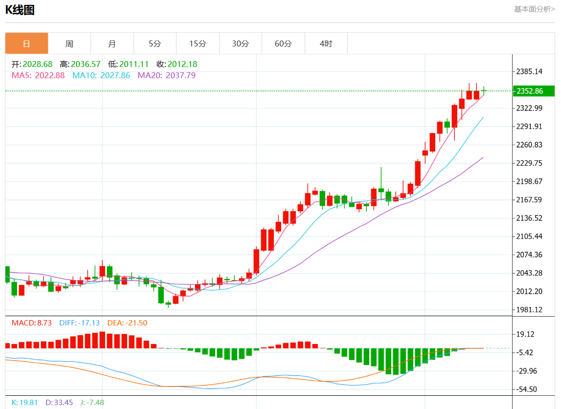 周三欧市盘中,现货黄金报2354.67,涨幅0.09%。