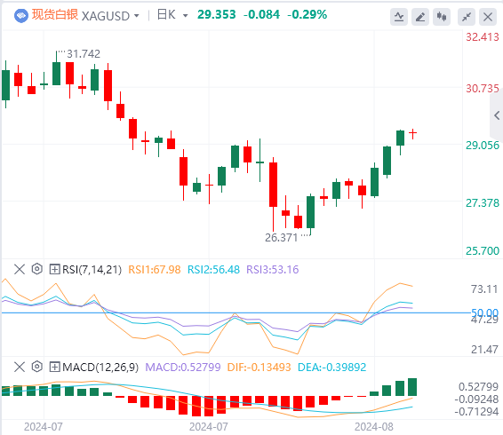 银价自26.44一线获利买盘支撑,价格震荡上行,当前涨破前期次高点29.20一线,最高触及29.52一线,交易重心不断上移,市场处于偏多走势中。均线系统上短期60均线高于长期100均线,且双双拐头向上,形成多头排列之势,表明银价处于强势多头中。日内操作上,坚持逢低做多的操作思路,关注第一支撑位29.13一线,如若在此震荡企稳,可考虑布局多单,上行关注29.52一线,若上破则白银将打开上行空间。