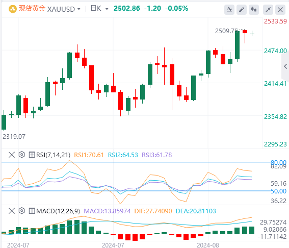 金价自2363.0附近获得买盘支撑,价格震荡上涨,不断创出新高,最终涨破2500.0的整数关口,交易重心不断上行,市场处于偏多走势中。均线系统上,价格高于短期60均线及长期200均线,且双双拐头向上,形成多头排列之势,表明金价强势上涨的态势。日内操作上坚持逢低做多,建议2486.0附近尝试布局多单,上行关注第一压力位2509.0一线,如涨破此位,金价将进一步打开上行空间。