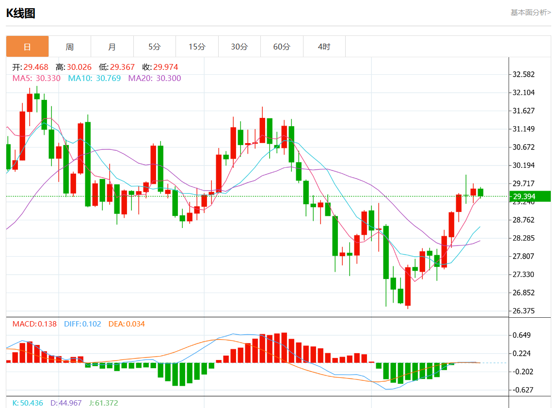 白银交易策略:在29.63之上,看涨,目标价位为30.30,然后为30.50。