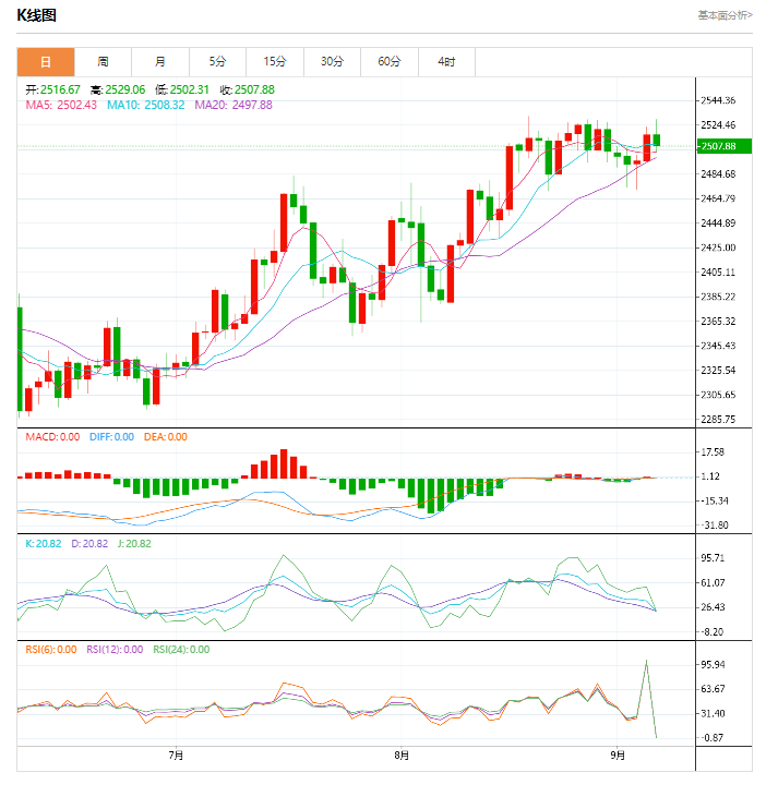 黄金白盘小幅震荡运行,布林带走势运行区间小幅缩减。布林带走势整体偏上移。在日线级别黄金收阳的情况下,且今日黄金高开的情况下。黄金价格大概率还会走高破位。破历史新高主要看晚间非农数据给不给力了。但多头延续的情况下,黄金建议先看回踩,回踩以周四晚间回踩低位2504为底部支撑,其次先看回踩2510附近反弹。