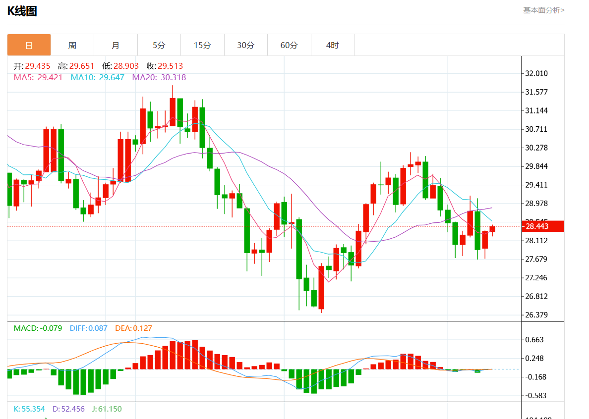 周二欧市盘中,现货白银报28.297,涨幅0.12%。