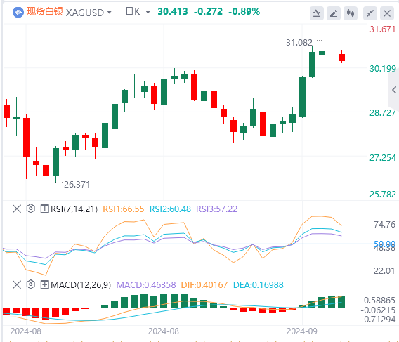 黄金强势突破三角形关键压力位2528后打开了上涨空间,继续延续多头趋势行情。局部上看价格在走上涨趋势行情的中枢高位震荡节奏,短线支撑位2560附近,短线压力位2588附近,价格经过时间换空间的震荡后大概率延续多头行情。综合MACD指标看,快慢线低位金叉信号出现,表明价格调整将继续开启多头上冲浪行情。策略上建议顺多头趋势行情支撑位埋伏多单为主思路。