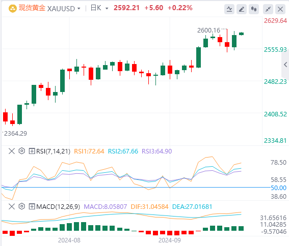 在周三的降息决定之后,黄金市场的焦点在地缘风险上,美国官员周三表示,美国不再预计以色列和哈马斯近期将达成停火协议,黎巴嫩真主党领导人发表讲话时说,以色列引爆数千个通信设备试图杀死数千名黎巴嫩人,这越过了所有红线,等同于宣战。此外,俄乌冲突也在持续,俄罗斯国防部发布战报称,过去一天,俄军在哈尔科夫、顿涅茨克多个方向打击乌军,对于黄金后期走势而言,地缘风险近期也支撑着黄金,后期黄金继续震荡上行将是大概率。