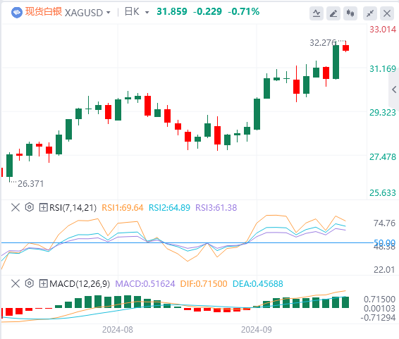 从白银4H周期图来看,价格自低点起涨以来,高低点同步上移,呈现强势的多头行情,均线系统多头排列,对价格有一定支撑作用。当前价格再次创下高点32.26附近后,短期或随CCI指标的超买区间拐头向下而回落,下方可关注31.70附近,该位置为前期历史高位,对价格具有支撑作用。日内可等待价格回落至31.70支撑位附近,尝试布局多单。
