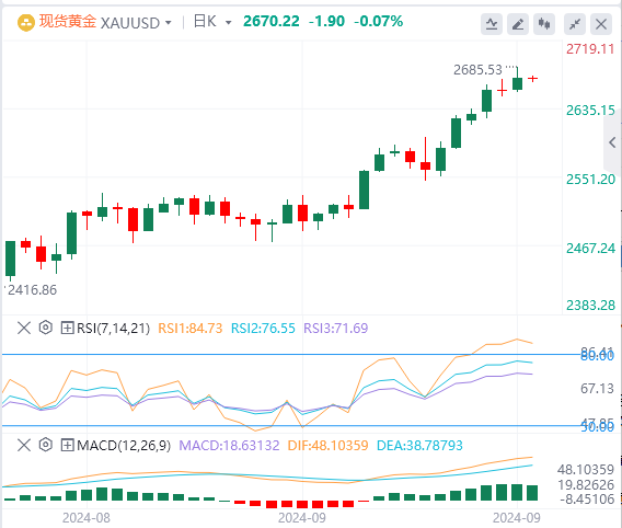 投资者正在等待周五公布的核心个人消费支出(PCE)物价指数。如果出现通胀回暖的迹象,则可能会打压美联储11月降息50个基点的预期,进而可能引发金价的回调行情,投资者需要预约警惕。