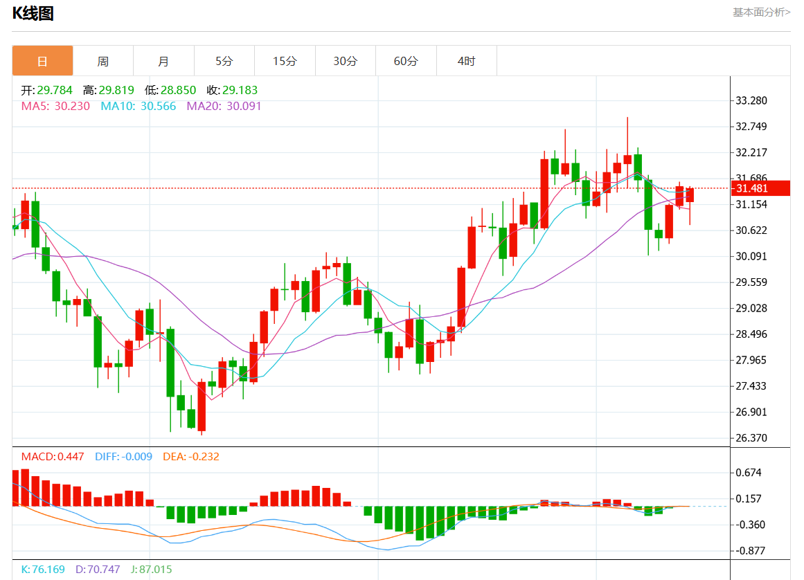 周一欧市盘中,现货白银报31.430,跌幅0.29%。