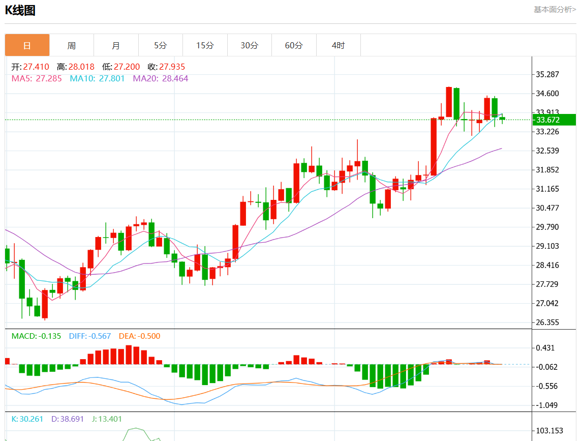 周四欧市盘中,现货白银报34.510,跌幅0.74%。