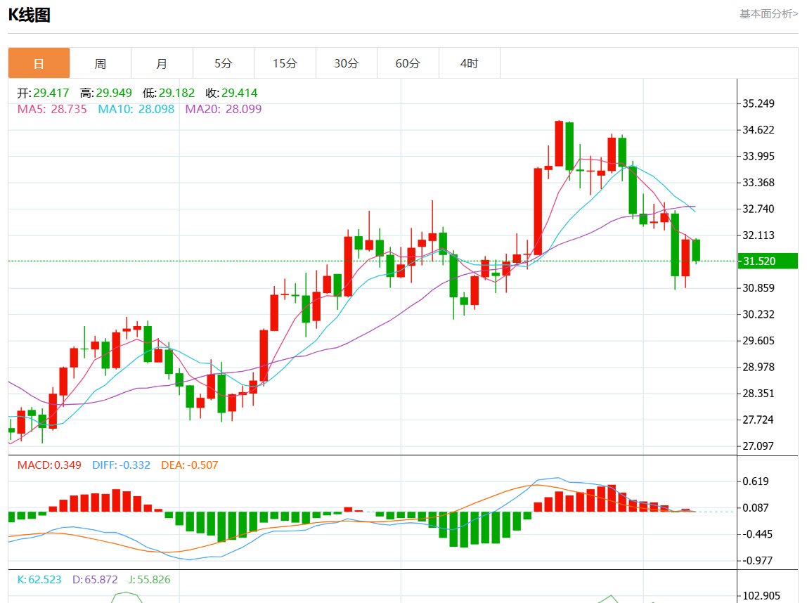 周五欧市盘中,现货白银报31.480,跌幅1.78%。