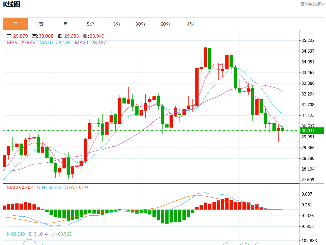 周一欧市盘中,现货白银报30.890,涨幅1.60%。