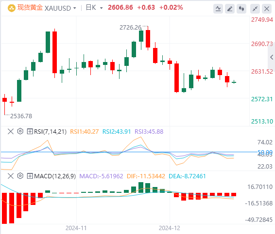 周一,金价有所回落,最低点下探至2596美元/盎司附近。然而,展望未来,地缘政治紧张局势预计将持续,主要央行对黄金的持续购买将为金价提供支撑。特别是在特朗普政府执政期间,美国的债务状况可能会进一步恶化,财政赤字可能会增加,这将进一步激发投资者对黄金的避险需求。