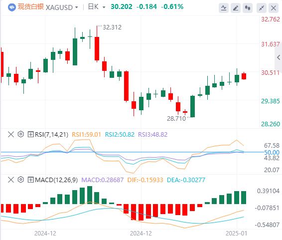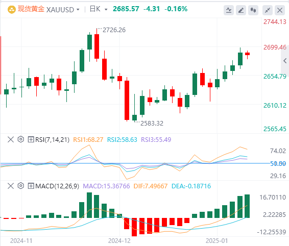 金价反弹,原因是即使强于预期的美国就业数据强化了美联储今年可能不会大刀阔斧降息的预期,但特朗普新政府政策的不确定性以及地缘局势升级提升了避险吸引力。现货金上涨0.73%,报每盎司2689.6美元附近。