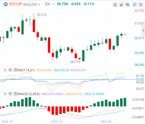 白银于28.75一线企稳,并形成W底形态结构,高低点不断抬高并站稳颈线位29.90一线。重心整体逐步上移,打破了前期下行趋势的上沿压制。从下方MACD指标来看,量能处于零轴之上,并表现多头量能的放量。所以,操作上建议逢低尝试做多思路为主。
