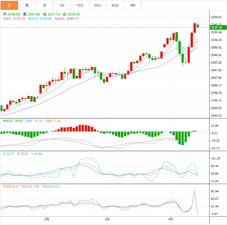 激进策略:3200 美元附近分批建多,止损 3170 美元,目标 3250-3290 美元。