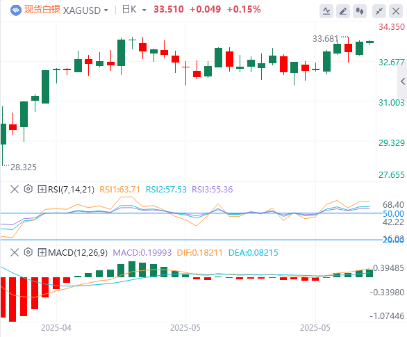 从结构来看,白银处于31.65-33.65区间内以ABC的形式上下震荡,始终未能有效打破盘整格局。目前靠近震荡上沿,可尝试向下的运行。从下方MACD指标来看,量能萎缩,多空围绕零轴来回穿梭,也验证了震荡走势。操作上建议逢高布局空单思路为主。