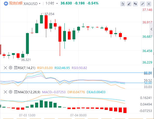 从形态结构看,白银价格处于宽幅箱体震荡格局当中,上轨压力位37.00附近,短线支撑位36.50附近,节奏上就是局部震荡格局,适合短线高抛低吸操作。综合MACD指标看,快慢线高位死叉信号形成,表明多头无力行情进入震荡调整浪节奏。策略上看,鉴于行情震荡节奏建议找压力位埋伏空单思路。