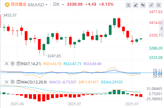 由于本周四即将公布7月美联储货币政策。尽管有“美联储传声筒”放风称未来仍需降息,但本周FOMC会议预计不会立即行动,且理事库格勒缺席导致票委减少,可能使政策决定更趋谨慎。市场对9月或年底前降息的预期仍在,但若美联储维持鹰派立场,强调通胀风险或推迟宽松政策,美元可能获得支撑,从而对以美元计价的黄金构成压力。