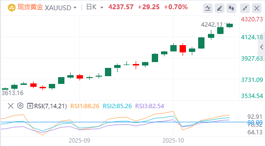 美国经济的疲软信号进一步放大了黄金的避险魅力。政府停摆已持续15天,每天造成约150亿美元的经济产出损失,这直接影响关键数据的发布,如通胀和零售销售报告。同时美国总统特朗普考虑结束与中国的部分贸易关系,这番言论迅速点燃市场不安情绪。上涨周期都是利好消息,多头想不涨都难。