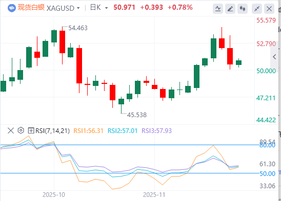 达拉斯联储主席洛根的立场同样强硬,她在同一场合重申,通胀水平不仅过高,还呈现上升趋势,距离2%的目标还有漫长的路要走。美联储多位决策者对进一步放宽货币政策表现出谨慎态度,导致根据CMEFedWatch工具显示的市场对12月降息概率已从本周早前的50%降至约46%。在利率较高的环境下,不生息的黄金吸引力会下降。