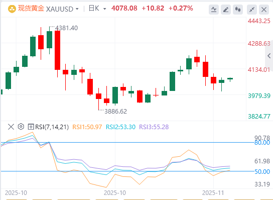数据方面:10月中旬当周初请失业金人数飙升至两个月最高点,续请失业金人数更是直接突破190万人大关。与此同时,克利夫兰联储披露上个月有整整3.9万美国人提前收到裁员通知,ADP私营就业报告也显示,过去四周平均每周净裁员高达2500人。这些数字叠加在一起,只传递出一个信号——美国劳动力市场正在急速恶化!美国数据崩盘直接提升了市场对12月份降息概率,支撑了黄金多头反弹。市场焦点都是紧盯周四公布的非农数据寻找最后对降息预期的线索。