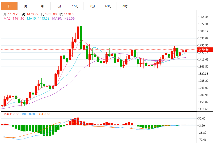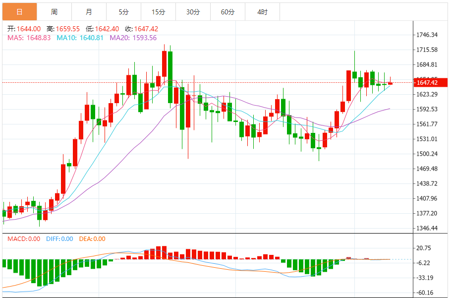 黄金目前整体维持在图中的红色支撑线上方运行,呈现出支撑线有效,低点逐渐上移的特征。从均线上来看,黄金近期大部分时间都在关键均线EMA144和EMA169上方运行,这两条均线多次为金价提供了支撑,这表明黄金当前的走势仍以偏多为主。上图中画出了黄金面临的重要支撑位,压力位以及预期的后市走势图,预计日内金价将在短暂回调后继续上涨,故操作上建议以逢低做多为主。