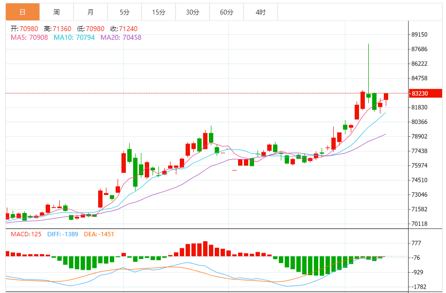 日线级别:呈现“五连阳”强势形态,K线突破前期上升通道上轨,均线系统呈多头排列,MACD金叉放量且未出现背离,RSI指标虽升至78超买区,但强势行情中仍具上行空间,符合白银牛市“超买不回调”的特征。