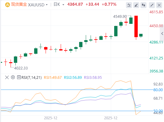 价格自低位起涨后,经过数轮拉涨,达到历史新高4549.5附近,随后多头动能由盛转衰,行情进入调整阶段,该回调是对前期大幅上涨的修复,但周线、月线级别上行趋势尚未改变,可关注近期调整结束后的多头重启机会。下方关注布林带下轨附近对价格的支撑作用,该位置同时为前期震荡区间关键支撑位。CCI指标在超卖区间附近拐头向上,或预示空头动能有所衰减。策略上建议等价格回调后,逢低做多博弈多单思路为主。