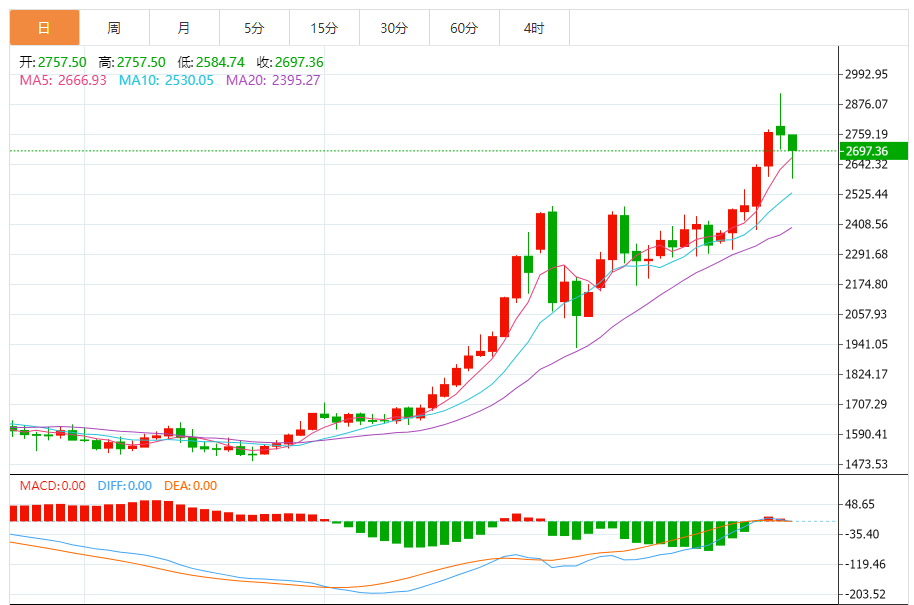 今日最新铂金行情:2696.65