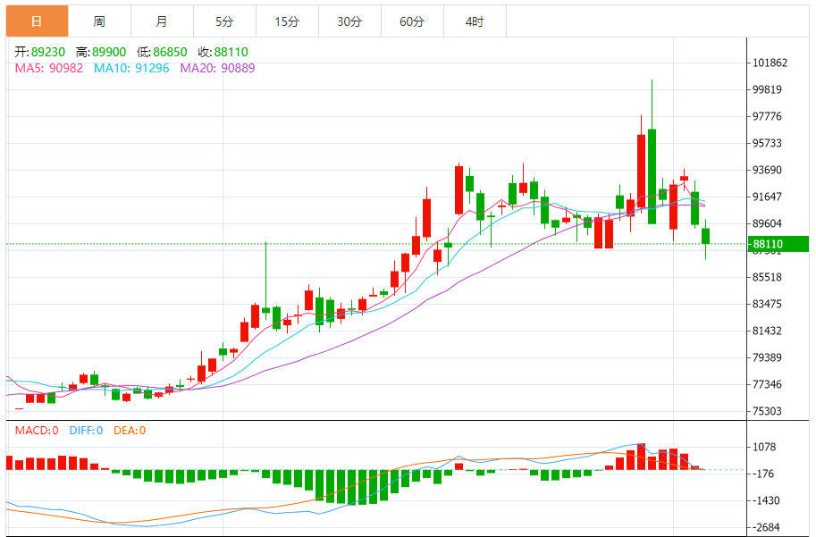 黄金价格亚市盘初下行触及日内低点1080.59美元/盎司之后反弹,突破1090水平并刷新日内高点1094.60美元/盎司。美市盘中,国际金价于1090美元/盎司附近水平窄幅整理。北美盘尾出现下滑,回落至1090以下,收于1086.80美元/盎司。