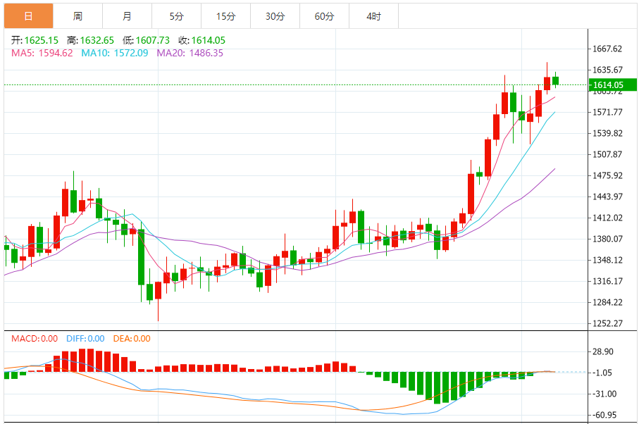 铂金价格走势图今日最新铂金行情(2025年10月6日) 今日最新铂金行情:1616.15 备注:以上铂金价格仅供参考,请以官方价格为准。