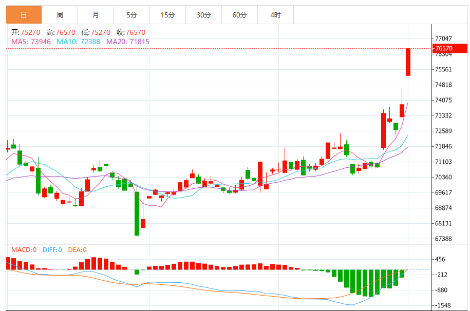 黄金 行情表现:截至10月6日21时23分,国际黄金期货(纽约金)价格为3956.3美元/盎司,较前一交易日上涨47.4美元,涨幅1.21%,最高达到3973.7美元/盎司,最低为3909.2美元/盎司;国际黄金现货(伦敦金现)价格为3936.37美元/盎司,上涨27.07美元,涨幅0.69%,最高3949.3美元/盎司,最低3898.67美元/盎司;上海黄