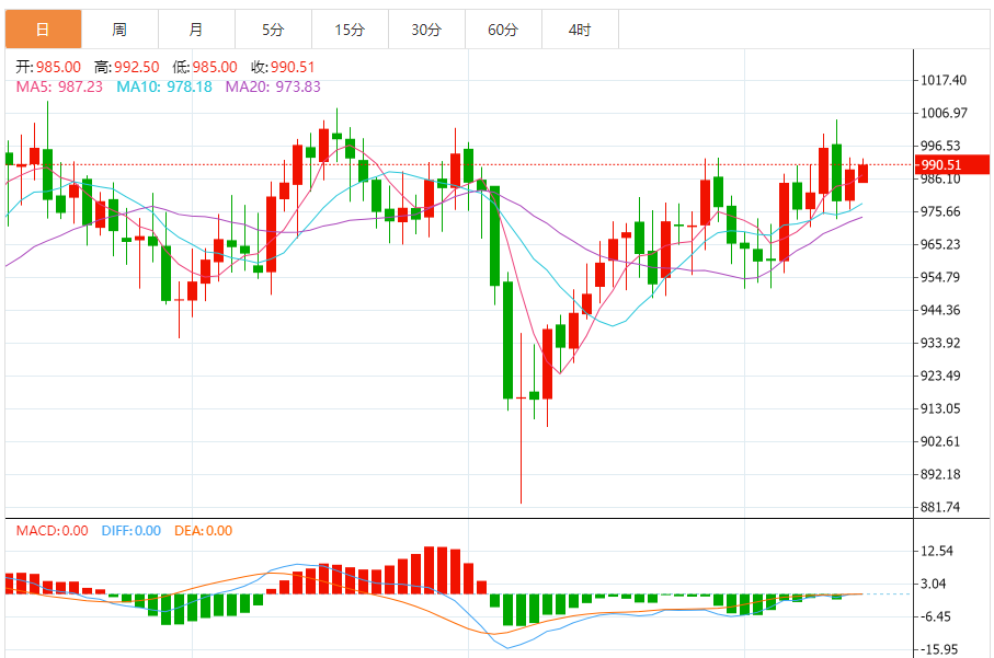 铂金价格走势图今日最新铂金行情(2025年5月13日) 今日最新铂金行情:979.40 备注:以上铂金价格仅供参考,请以官方价格为准。