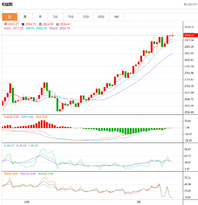 黄金、白银、原油、贵金属2月20日收盘情况: 周四,由于美国总统特朗普的关税威胁引发全球贸易战担忧,激起避险需求,黄金价格飙升至历史新高。 现货黄金价格周四收盘上涨0.2%,报2939.04美元/盎司。周四盘中,金价曾触及2954.96美元/盎司,为今年迄今第十次历史新高。 Zanrtal副总裁兼高级金属策略师trGrant表示:“